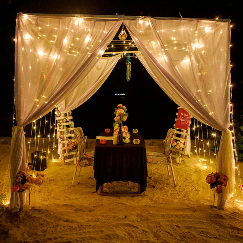 Beach Proposal Planning: Ideal for couples who love nature, serenity, and sunsets. But you’ll need permissions, décor arrangements, and tide timing—details your planner can handle.