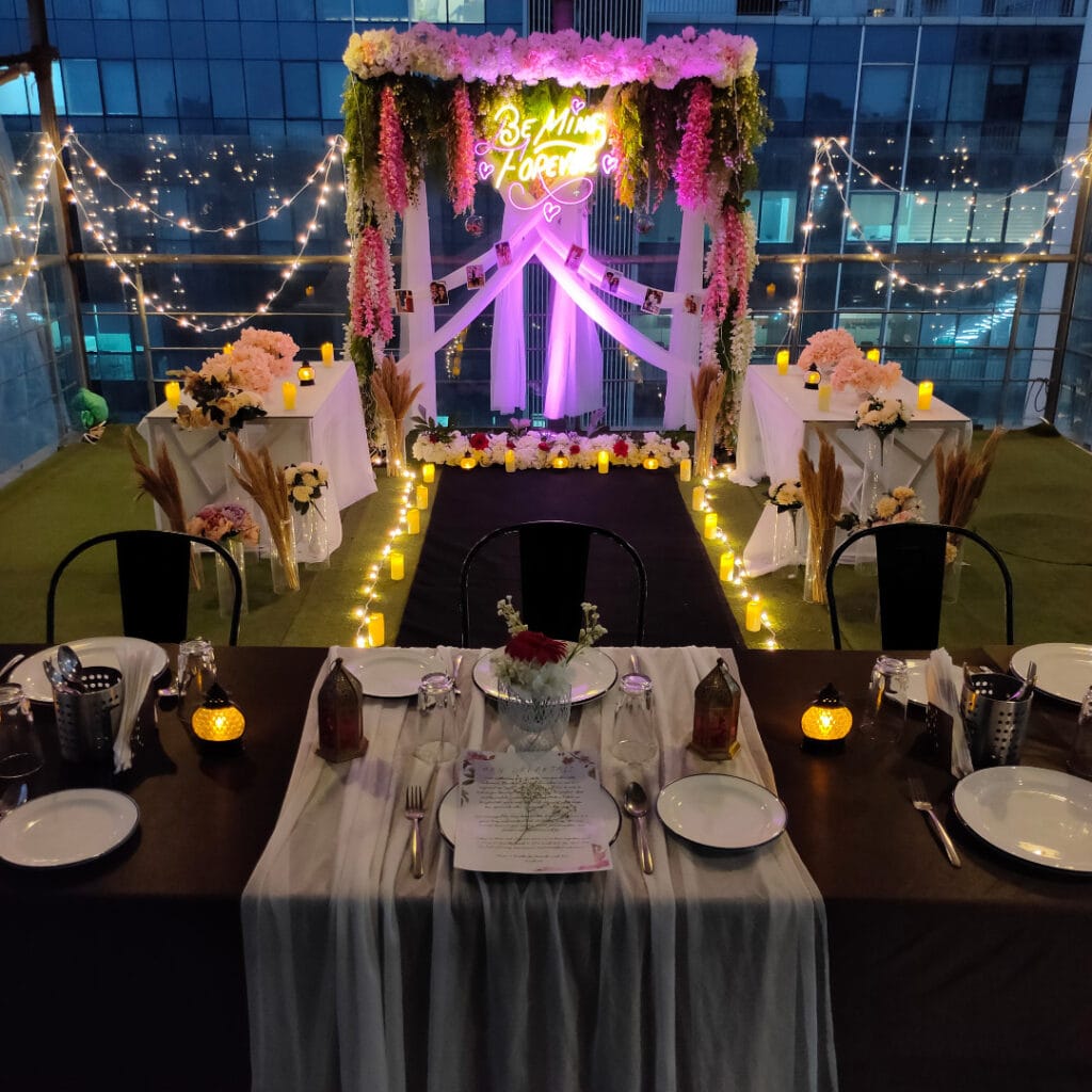 At Spaces of Solitude, the team specialises in curating personalised themes, whether it’s a rooftop proposal under the stars or a beach proposal planning experience with sunset hues. Their goal? To make your dream proposal come alive effortlessly.