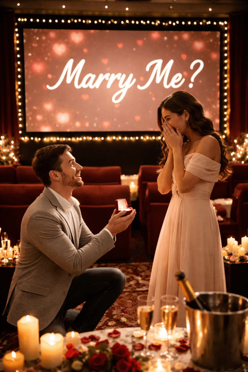 Many couples choose private screenings for proposals because the environment is calm and private. There is no audience, no pressure, and no distractions. The focus stays on the moment and the emotions involved.