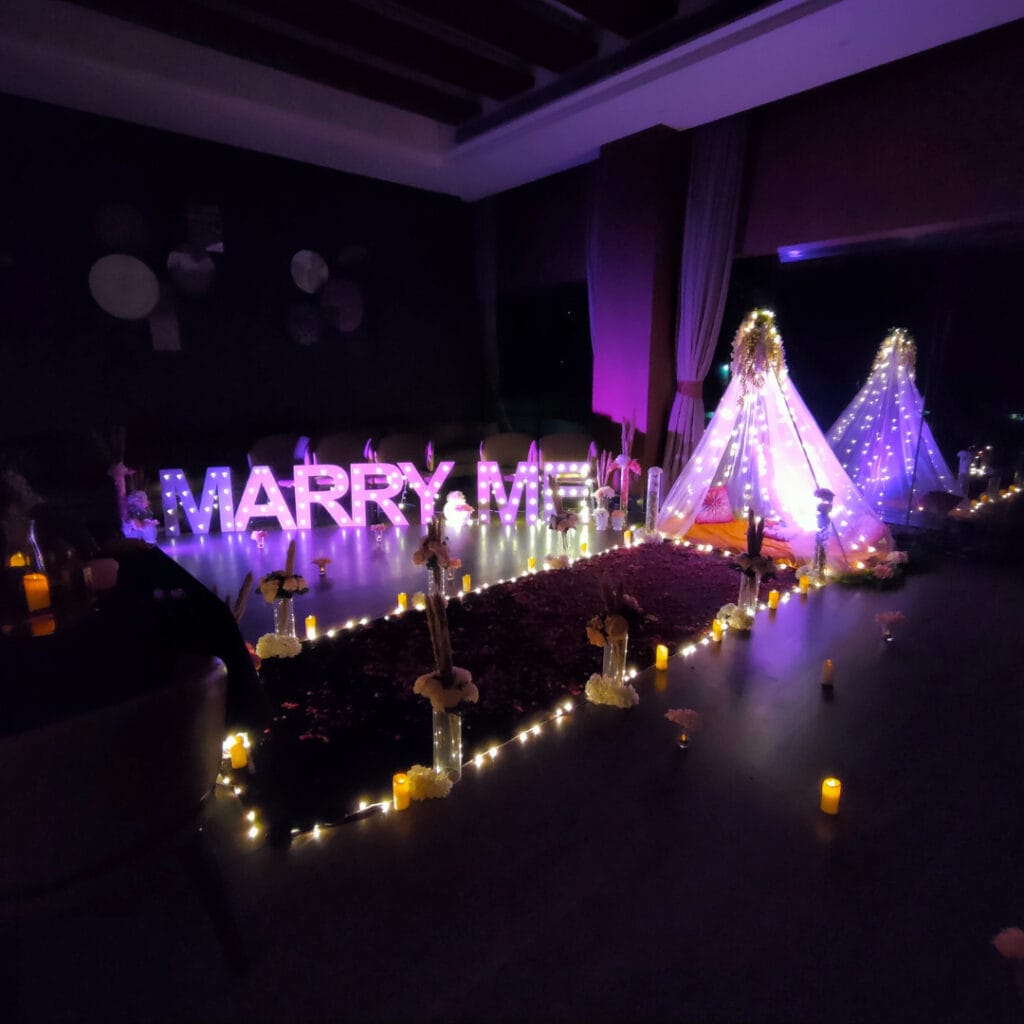 Indoor proposals are becoming a preferred choice for couples who value emotional comfort and privacy. Whether it’s a small curated studio, a cosy indoor terrace, or a rented intimate space, indoor proposals allow complete control over lighting, music, and décor. With no weather concerns or public interference, the focus stays entirely on the moment.